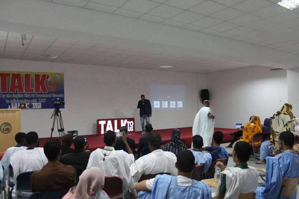 تلا ذلك اطلاق مشروع تحدث معنا الذي ينظمه نادي الاجليزية بجامعة نواكشوط وقد تحدث رئيس النادي عن اهمية هذا النادي و دوره في نشر الثقافة بين الشباب و تحدثت رئيسة الجامعة مرحبة بالحضور و مؤكدة على ان الجامعة هي مركز لدعم المجتمع الموريتاني .