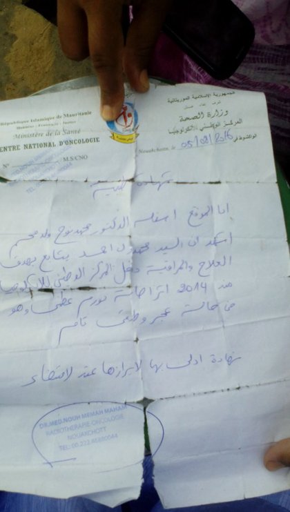 وقد اطلقت العائلة مناشدة ترجوا من خلالها ان تحظى بلفتة إنسانية لهذا الشاب المسمى محمد ولد أحمد، وزوجته : فاطمة بنت محمد، وهو مصحوب بورقة موقعة من طبيبه المتابع للحالة، ومن إمام مسجد قبى في تيارت،_ انظر المرفق – تثبت صحة الخبر.