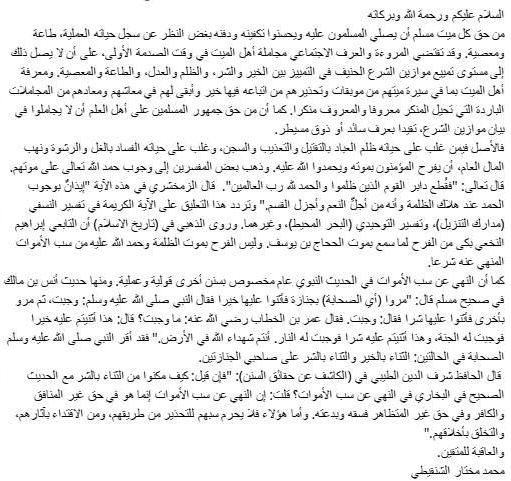 أستباح هذا المجرم عرض الموتى والأحياء، بقوله الغريب، "إن النهي عن سب الأموات إنما هو في حق غير المنافق والكافر وفي حق غير المتظاهر فسقه وبدعته. وأما هؤلاء فلا يحرم سبهم للتحذير من طريقهم، ومن الاقتداء بآثارهم، والتخلق بأخلاقهم".