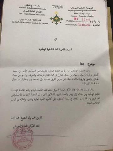 هنأ قائد أركان الجيوش الموريتانية الفريق محمد ولد الغزاوني قناة الموريتانية الرسمية وإدارتها، ووصف تغطيتها للاستعراض العسكري الأخير في كييهدي بأنها امتازت "بالجودة والحرفية".