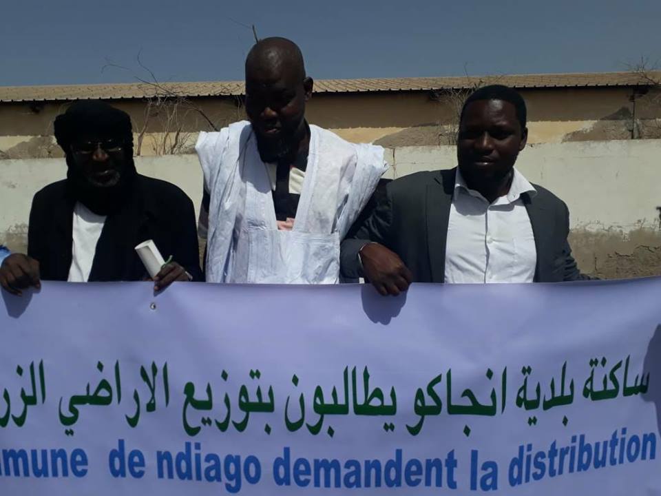 نظم بعض المواطنين من ساكنة مقاطعة كرمسين ومركز انجاغو الإداري وقفة احتجاجية صباح اليوم من أمام مباني وزارة الزراعة في نواكشوط، مطالبين بإشراكهم في توزيع الأرضي الزراعية بقناة آفطوط الساحلي.