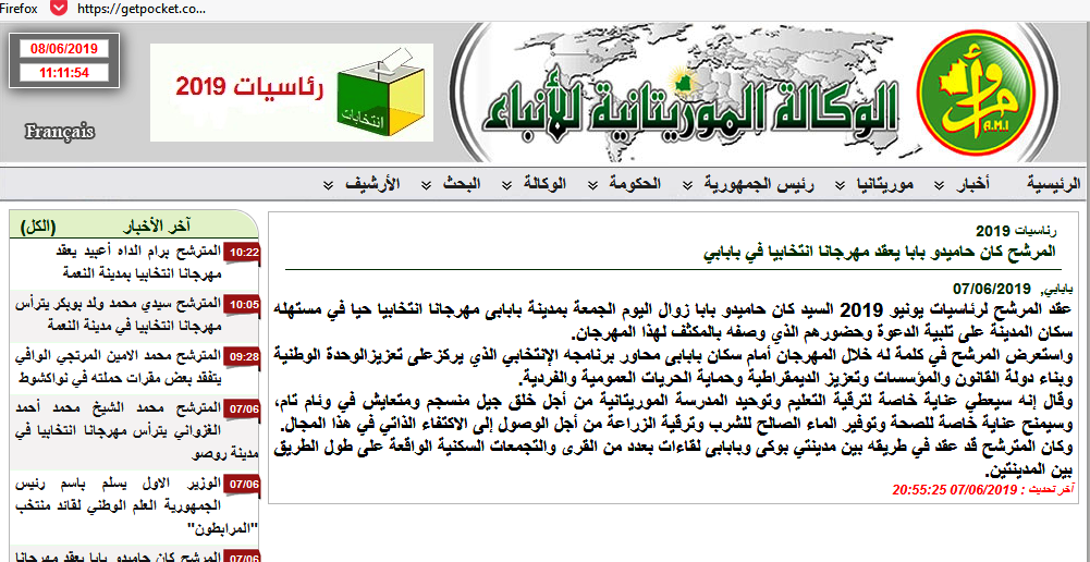 كما من العادة أن تقوم الوسائل الاعلامية العمومية بتغطية أنشطة المرشحين للرئاسيات خلال الحملة الانتخيبة الحالية ومنحهم حصصا متساوية عادلة، إلا أن الوكالة الموريتانية وفي سابقة من نوعها أقدمت مع بداية انطلاقة الحملة الانتخابية على خطوة في عكس اتجاه الحرية والديمقراطية، حيث واكبت بعض المترشحين بصور حديثة ومن حفل الافتتاح، بينما لم يرفقوا خبر المرشح كان حامديو بابا بصورة، وجاؤوا له بصورة قديمة من الأرشيف،وأعطت الأولوية لبقية المرشحين الخمسة، الأمر الذي أثار حفيظة بعض المتابعين للساحة الإعلامية، مشيرين إلى أنه أمر لا يتماشى مع المصداقية والأمانة.