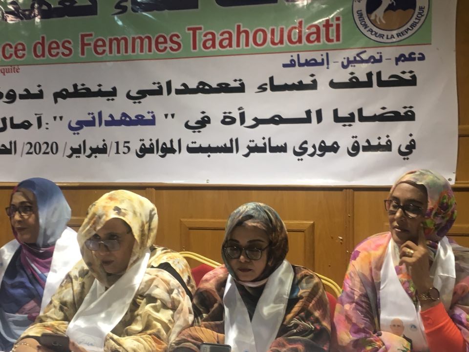 اللاتي استطعن بحنكتهن وحكمتهن لم شتات مختلف تشكيلات الطيف السياسي النسوي. ليقلن بصوت واحد وموحد كلمتهم الفصل في مرجعية الحزب، وليعبرن عنها قولا وعملا بالتمسك بفخامة رئيس الجمهورية محمد ولد الشيخ الغزواني كمرجعية للحزب