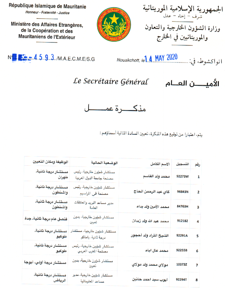 وكانت الأمانة العامة للوزارة قد استدعت أمس بعض المستشارين إلى الإدارة المركزية بنواكشوط