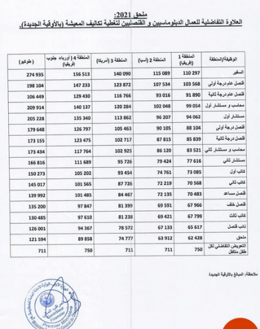 أصدر وزير المالية مقررا بموجبه يتم تحديد علاوة للديبلوماسيين يتفاوت مبلغها مابين الرتبة الدبلوماسية و القارة التي يقع فيها مقر التمثيل الدبلوماسي ،وقد جاءت المبالغ كبيرة للغاية حصل عليها كل دبلوماسي وحتى اطفالهم ...