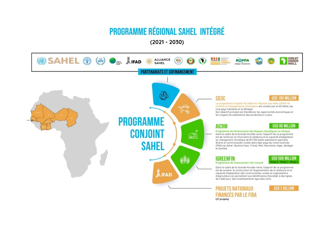 كما تجدر الإشارة إلى ما تمكن الصندوق من نسجه من شراكات استراتيجية ومالية وفنية في إطار برنامجه المندمج في منطقة الساحل، شملت المنظمات الأممية القاطنة في روما، البنك الأفريقي للتنمية، صندوق البيئة الأخضر، والعديد من الاتحادات وشبكات المنظمات المهنية الاجتماعية على مستوى شبه المنطقة.