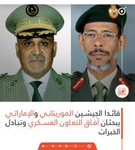 التقى اليوم الثلاثاء بالعاصمة الإماراتية أبوظبي، قائد الأركان العامة للجيوش الفريق محمد بمبه مگت الذي يزور الإمارات حاليا، وقائد أركان القوات المسلحة الإماراتية الفريق الركن حمد محمد ثاني الرميثي.