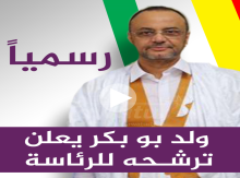 قالت مصادر إعلامية أن الوزير الأول السابق سيدى محمد ولد بوبكر سيعلن ترشحه للانتخابات الرئاسية المقبلة من ملعب حي السعادة (حي ملح) بنواكشوط الجنوبية نهاية الشهر الجارى.