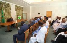انفض قبل قليل اجتماع ترأسه الرئيس الموريتاني مع اللجنة المكلفة بإعداد النشيد الوطني التي تم تعيينها يوم أمس بمرسوم رئاسي و عين على رئاستها وزير الثقافة الدكتور محمد الأمين ولد الشيخ .