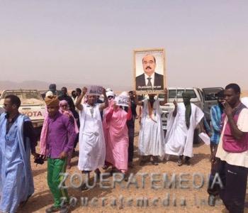 استقبل أهالي المنقبين المفرج عنهم في مدخل الزويرات حاملين الصور المكبرة لرئيس الجمهورية محمد ولد عبد العزيز.