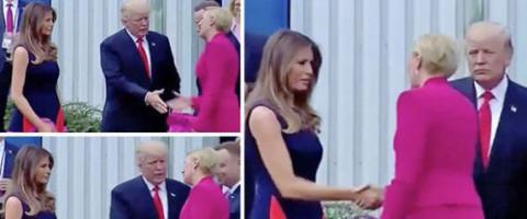 تعرّض الرئيس الأميركي دونالد ترامب إلى موقف مُحرج؛ وذلك بعد أن مد يده لمصافحة زوجة رئيس بولندا التي تجاهلته تماماً وتوجهت إلى مصافحة زوجته ميلانيا.