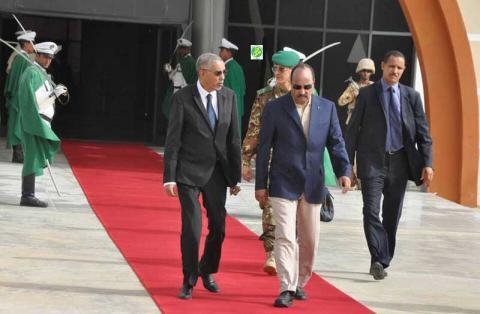 ويرافق ولد عبد العزيز وفدا يضم وزراء ومستشارين في الرئاسة: البروفسير كان ببكر وزير الصحة، آمال بنت مولود وزيرة الإسكان والعمران والاستصلاح الترابي، لمينة بنت القطب ولد أمم وزيرة الزراعة، أحمد ولد باهيه مدير ديوان رئيس الجمهورية، عبد الله ولد احمد دامو مكلف بمهمة برئاسة الجمهورية، أحمد سالم ولد مرزوك مستشار برئاسة الجمهورية، تيام جمبار مستشار برئاسة الجمهورية، الحسن ولد أحمد المدير العام لتشريفات الدولة.