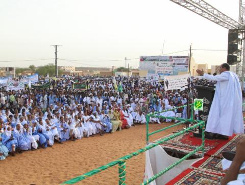 ترأس رئيس الجمهورية السيد محمد ولد عبد العزيز مساء اليوم الأربعاء بمدينة العيون عاصمة ولاية الحوض الغربي، مهرجانا شعبيا حاشدا شاركت فيه مختلف مقاطعات الولاية وفعالياتها السياسية والاجتماعية والشبابية والنسائية والمهنية والمدنية والحزبية.