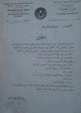 أعلنت وزارة الصحة عن مسابقة داخلية لتكوين أساتذة شبه طبيين، في إطار التعاون مع الجمهورية الجزائرية.