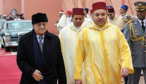 على إثر الأخبار المتواترة بشأن إعلان محتمل من قبل الولايات المتحدة الأمريكية الاعتراف بالقدس كعاصمة لإسرائيل ونقل السفارة الأمريكية إلى المدينة المقدسة، أجرى صاحب الجلالة الملك محمد السادس نصره الله، اليوم اتصالا هاتفيا مع رئيس السلطة الفلسطينية فخامة السيد محمود عباس وبهذه المناسبة جدد صاحب الجلالة، بصفته ملكا للمملكة المغربية، أمير المؤمنين، ورئيس لجنة القدس المنبثقة عن منظمة التعاون الإسلامي، تضامن المملكة القوي والثابت مع الشعب الفلسطيني الشقيق في الدفاع عن قضيته العادلة وحقوقه المشروعة، خصوصا في ما يتعلق بوضع القدس الشريف كما عبر جلالة الملك عن رفضه القوي لكل عمل من شأنه المساس بالخصوصية الدينية المتعددة للمدينة المقدسة أو تغيير وضعها القانوني والسياسي ومن جانبه، وبعد أن نوه بدور وجهود جلالة الملك، أعرب الرئيس الفلسطيني عن أسفه لإدراج مثل هذه المبادرة غير الملائمة على أجندة الإدارة الأمريكية كما عبر عن الانشغال العميق للسلطة الفلسطينية إزاء نتائجها الخطيرة على عملية السلام في الشرق الأوسط وأمن واستقرار المنطقة واتفق جلالة الملك والرئيس الفلسطيني على مواصلة الاتصال المباشر والتشاور الدائم حول هذه القضية وإرساء تنسيق وثيق بين الحكومتين من أجل العمل سويا لتحديد الخطوات والمبادرات التي يتعين اتخاذها