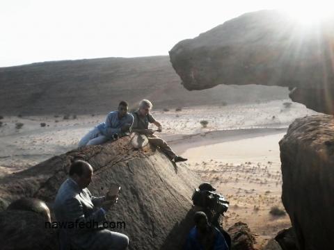وبعد الاستماع إلى الشروح حول الرسم أخرج الرئيس هاتفه وصورّه لتكون تلك المرة الأولى التي يلتقط فيها صورة أعجبته خلال زيارته الأخيرة لتيشيت .,حسب نوافذ.