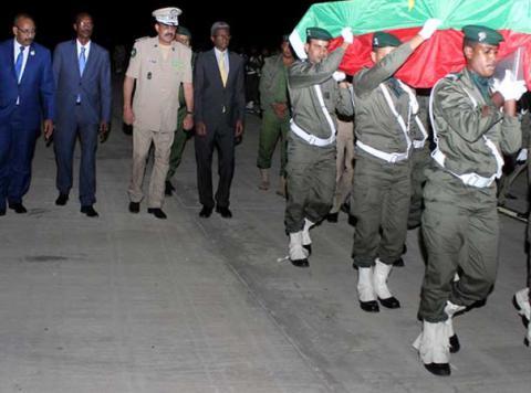وصل مساء اليوم الجمعة الى نواكشوط جثمان الدركي من الدرجة الرابعة الشهيد عيسى حمادي ولد صمب قادما من مدينة ابريا بجمهورية وسط افريقيا.