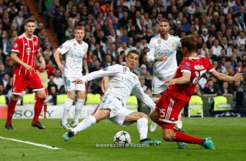 وتأهل الفريق الملكي، بعدما حقق الفوز في مباراة الذهاب بنتيجة 2-1، على ملعب أليانز أرينا، ليذهب إلى كييف، بعد الفوز بنتيجة (4-3) في مجموع المواجهتين.ومنذ الدقائق الأولى، ظهرت مساعي الفريق الضيف، في خطف هدف مبكر، يسهل عليه المباراة من البداية، ويضع الضغط على ريال مدريد أمام جمهوره.واعتمد بايرن ميونخ، على الجبهة اليسرى كسلاح أساسي في العمل الهجومي، حيث تسبب فرانك ريبيري، رفقة ديفيد ألابا، في خلق مشاكل بالجملة على لوكاس فاسكيز ولوكا مودريتش.ومع الدقيقة الثالثة من الشوط الأول، أعطى جوشوا كيميتش، هدف التقدم لبايرن ميونخ، بعدما فشل سيرجيو راموس في التعامل مع عرضية مولر، لتصل إلى الظهير الألماني، الذي وضع الكرة بسهولة داخل المرمى.واصل البايرن، سيطرته الكاملة في أول 10 دقائق، وسط ارتباك كبير في خط دفاع ريال مدريد، وهو الأمر الذي استغله خط الوسط بقيادة خاميس رودريجيز، الذي مرر كرة بين المدافعين في الدقيقة السادسة، وصلت إلى مولر، ولكن جاءت تسديدة الأخيرة ضعيفة في يد الحارس نافاس.وقام لاعبو الفريق الملكي، باستفاقة مؤقتة، ومع الدقيقة 11، أرسل كوفاسيتش كرة طولية إلى مارسيلو، الذي بدوره، أرسل عرضية رائعة وصلت لبنزيما، الغير مراقب، ليأتي معه هدف التعديل، على غير مسار اللعب.واستمر الضيوف في استغلال الثغرة الواضحة، بتكثيف اللعب على الجانب الأيسر، فعلى الرغم من التزام لوكا مودريتش بالتواجد مع فاسكيز، في أغلب أوقات المباراة، لكنهما تركا مساحات، أدت إلى هروب ألابا في أكثر من محاولة، ولكن جاءت عرضياته بسلام على ريال مدريد.