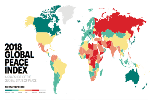 ووفق مؤشر السلام العالمي، فقد تراجعت تونس ب7 مراكز عن تصنيفها العام 2017، حيث احتلت المركز 7 عربيا، و78 عالميا، فيما احتلت الجزائر المركز 10 على المستوى العربي، و109 عالميا، مسجلة بذلك تراجعا ب3 مراكز عن تصنيفها الماضي.
