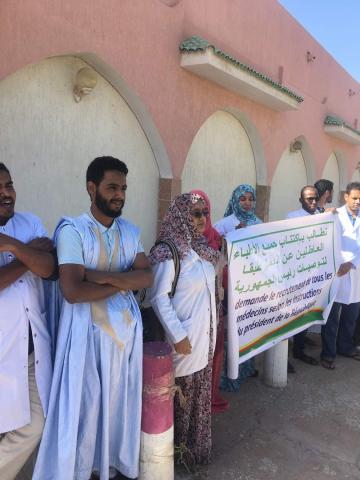 تظاهرت مجموعة من الشباب تضم بعض الأطباء العامين وبعض الأخصائيين خلال وقفة صباح اليوم أمام القصر الرئاسي مطالبين بإدماجهم في الوظيفة العمومية.