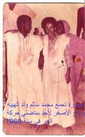 تجمع الصورة محمد سالم ولد الهيبه مع المرحوم كمرا ولد امبيريك وهو الأخ الأصغر للمرحوم يرب ولد بلال أحد مناضلي حركة الحرة والصورة في سنة 1980.
