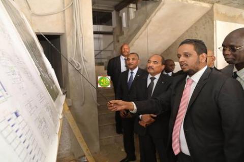 واستمع رئيس الجمهورية الذي كان مرفوقا بالوزير الأول السيد محمد سالم ولد البشير ووزير الإسكان والعمران والاستصلاح الترابي السيد الناني ولد اشروقة الى شروح حول وظائف هذا المبنى ومكوناته ومراحل إنجازه ودوره في توفير مكاتب ملائمة لعدد من القطاعات الوزارية. ويحتوي المجمع على ما يزيد على ثمانين مكتبا في الطابقين الأول والثاني منها ٢٢ مكتبا وقاعة كبري للاجتماعات إضافة لقسم للتوثيق والارشفة ومقهى وممر للزوار ووحدات للعرض الإلكتروني وفي الطابقين الثالث والرابع ٢٢ مكتبا كذلك وقاعة للاجتماعات واخرى للأرشيف ومقهى ونفس الشى ء في الطابقين الخامس والسادس وفي السابع والثامن ١٢ مكتبا وقاعة كبرى للاجتماعات الوزارية وقاعات للانتظار و١٥ قاعة للوثائق والارشيف ونفس الشيء في الطابقين التاسع والعاشر.