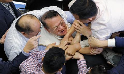 وقع شجار عنيف بالأيدي في برلمان هونغ كونغ اليوم بين نواب ديمقراطيين معارضين ونواب مؤيدين للحكومة، على خلفية مناقشة إقرار قانون جديد انتهى بإصابة 4 نواب على الأقل، ما استدعى اتدخل الإسعاف.