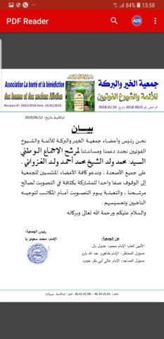 نحن رئيس وأعضاء جمعية الخير والبركة للأئمة والشيوخ الفوتيين نجدد دعمنا ومساندتنا لمرشح الاجماع الوطني السيد محمد ولد الشيخ محمد احمد ولد الغزواني على جميع الأصعدة وندعوا كافة الأعضاء المنتسبين للجمعية إلى الوقوف صف واحدا للمشاركة في التصويت لصالح مرشحنا بكثافة والتعبئة يوم التصويت أمام المكاتب لتوجيه الناخبين وتحسيسهم .