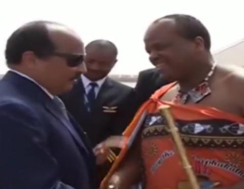 وصل الملك مسواتي الثالث ملك اسواتيني مطار نواكشوط الدولي واستقبل لدى سلم الطائرة من قبل الرئيس محمد ولد عبد العزيز.