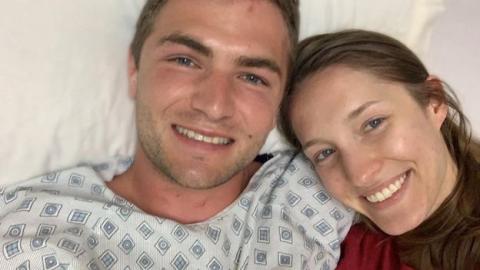 تعافى شاب حديث الزواج في مستشفى الولايات المتحدة إثر سقوطه في بركان خامد في شهر العسل وقيام زوجته بإنقاذه.