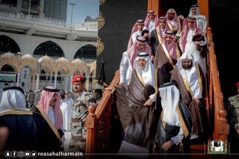 نيابة عن خادم الحرمين الشريفين الملك سلمان بن عبدالعزيز -حفظه الله- تشرف مستشار خادم الحرمين الشريفين أمير منطقة مكة المكرمة صاحب السمو الملكي الأمير خالد الفيصل بغسل الكعبة المشرفة صباح اليوم، وشارك صاحب السمو الملكي الأمير بدر بن سلطان بن عبدالعزيز نائب أمير منطقة مكة المكرمة، ومعالي الرئيس العام لشؤون المسجد الحرام والمسجد النبوي الشيخ الأستاذ الدكتور عبدالرحمن بن عبدالعزيز السديس، ومعالي وزير الحج والعمرة الدكتور محمد بن صال بنتن, وعدد من أعضاء السلك الدبلوماسي للدول العربية والإسلامية المعتمدين لدى المملكة، وعدد من أصحاب المعالي والفضيلة العلماء، وسدنة بيت الله الحرام وجمع من عمار المسجد الحرام.