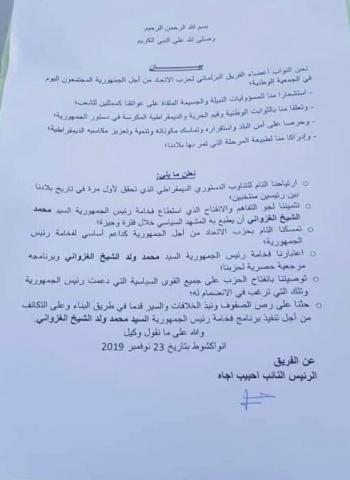 * تمسكنا التام بحزب الاتحاد من أجل الجمهورية كداعم أساسي لفخامة رئيس الجمهورية؛