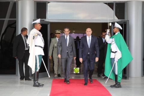 ورافق ولد الغزواني وفد يضم كلا من وزير الشؤون الخارجية والتعاون إسماعيل ولد الشيخ أحمد ووزير الدفاع حننا ولد سيدي وقائد أركان الجيوش الفريق محمد الشيخ ولد محمد الأمين.