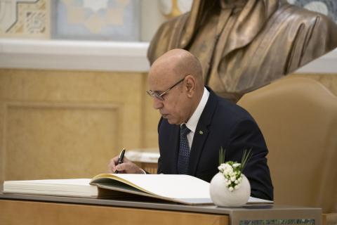 وفي هذا المقام صاحب السمو وأخي العزيز، يسعدني أن أقدم لكم باسمي شخصيا وباسم الشعب الموريتاني دعوة للقيام بزيارة لبلدكم الثاني الجمهورية الإسلامية الموريتانية التي تحظون فيها بكثير من المحبة والتقدير ولقد تركت الزيارة التاريخية التي قام بها لموريتانيا منذ ما يربو على خمس وأربعين سنة وبالضبط في التاريخ الذي ذكرتموه الآن، أبو هذه الأمة ومؤسسها المرحوم الشيخ زايد بن سلطان آل نهيان أثرا طيبا حيث ما زالت تلك الزيارة في ذهن كل الموريتانيين وهي لا تنسى واعتقد أننا جميعا متفقون على أنكم خير من يجدد هذا العهد وخير من يحمل مشعل المغفور له الشيخ زايد.