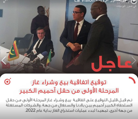 تَمَّ اليومَ، بالعاصمة السنغالية، التوقيعُ على اتفاقيةِ تسويق غاز المرحلة الأولي لمشروع السلحفاة الكبير آحميم "GTA" المشترك بين بلادنا والسنغال.