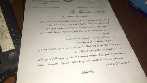 أعلنت وزارة الداخلية في بيان لها اليوم عن حذر تجوال على عموم التراب الوطني، وذلك ابتداء من الساعة الثامنة مساء وحتى الساعة السادسة صباحا.