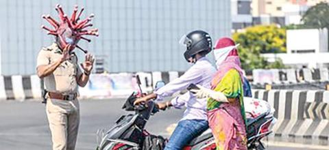 الشرطي الهندي رادجيش قرر ارتداء خوذة على شكل فيروس كورونا أثناء عمله، وقام الشرطي “راجيش” في مدينة “تشيناي” بتوقيف السيارات وحث المواطنين على البقاء في المنازل في ظل إغلاق البلاد لمدة 21 يوما للحد من انتشار فيروس كورونا.