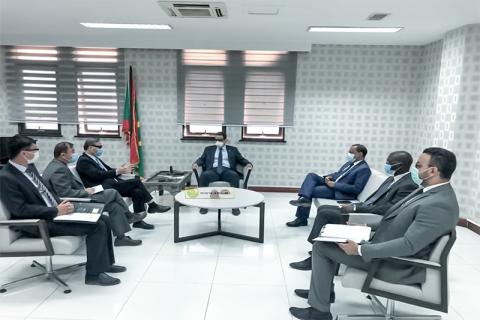 حيث قد وزير الاقتصاد والصناعة السيد عبد العزيز ولد الداهي، صباح اليوم الثلاثاء بمكتبه في نواكشوط رفقة وزير التجهيز والنقل السيد محمدو أحمدو أمحيميد، لقاء مشتركا مع سفير جمهورية الصين الشعبية المعتمد لدى بلادنا سعادة زهانغ جيانغو.