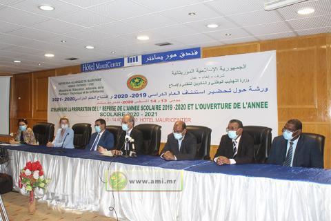بدأت الخميس في نواكشوط أعمال ورشة تحضيرية لاستئناف السنة الدراسية 2019 / 2020 وافتتاح العام الدراسي 2020/ 2021، منظمة من طرف وزارة التهذيب الوطني والتكوين التقني والإصلاح.
