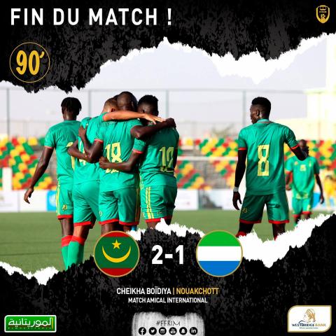 فاز المنتخب الموريتاني "المرابطون" مساء اليوم على نظيره السيراليوني بهدفين مقابل هدف، في المباراة الودية التي جمعتهما بملعب شيخا ولد بيديا في نواكشوط.