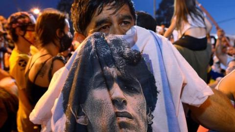 وظلت حشود الجماهير في الشوارع في وقت متأخر من الليل حدادا على وفاة مارادونا واحتفاء بحياته.
