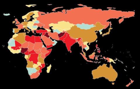 وتصدرت أفغانستان والعراق ونيجيريا الدول الأكثر عرضة لمخاطر الإرهاب، لتتقاسم الرتب الثلاث الأولى بنفس الترتيب، أما الولايات المتحدة الأمريكية فحلت في الرتبة 29، فيما جاءت فرنسا في الرتبة 38.