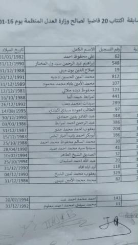 نشرت لجنة تحكيم مسابقة اكتتاب 20 قاضيا لصالح وزارة العدل، اليوم، نتائج المؤهلين للنجاح في المسابقة.