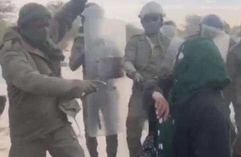 وتظهر الصور عناصر من الدرك يقمعون سكان تفيريت المطالبين بتحويل مكب النفايات عن قريتهم .