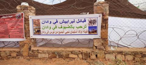 لم يحترم بعض سكان وادان مضمون خطاب رئيس الجمهورية حول القبيلة؛ فما تزال هذه اللافتة التي تضم اسم القبائل منصوبة أمام منصة المهرجان.
