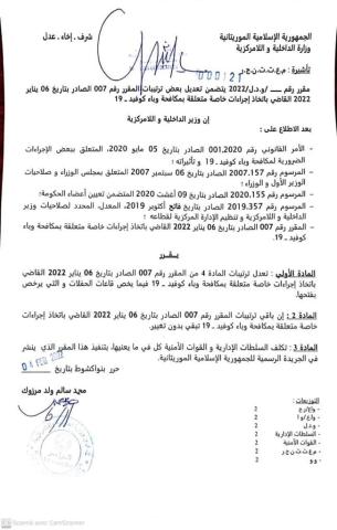 وذكرت وزارة الداخلية عبر صفحتها على الفيسبوك، أن القرار يأتي "نظرا للتطور الإيجابي الملاحظ بخصوص تراجع الموجة الرابعة لجائحة كوفيد 19، واستنادا على قرار من اللجنة الوزارية المكلفة بمتابعة الجائحة.