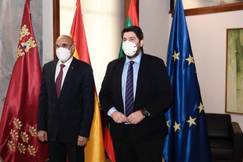 واستقبل ولد الغزواني من طرف رئيس حكومة إقليم مرسية السيد فرناندو لوبيز ميراس، مرفوقا بكبار معاونيه، وعقدا بقصر سان استيبان مقر حكومة إقليم مرسية، جلسة محادثات.