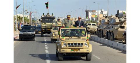 وحيى فخامة رئيس الجمهورية، رفقة قائد الأركان العامة للجيوش الفريق محمد فال الرايس الرايس، التشكيلات المشاركة في المسير العسكري من الجيش والدرك والحرس والشرطة التي عكس أداؤها جاهزية القوات المسلحة وإمكانياتها في حفظ الوطن والدفاع عن حوزته الترابية.