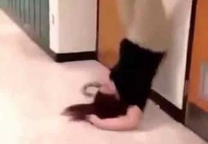 حاولت فتاة بدينة إثبات رشاقتها أمام صديقاتها من خلال تنفيذ حركة أكروباتية، فكانت النتيجة سقطة وضعتها في موقف محرج للغاية.ولجأت الفتاة إلى تنفيذ قفزة في الهواء والوقوف على يديها، إلا أنها لم تتمكن من إتمامها بنجاح، واختل توازنها لتسقط أرضًا.
