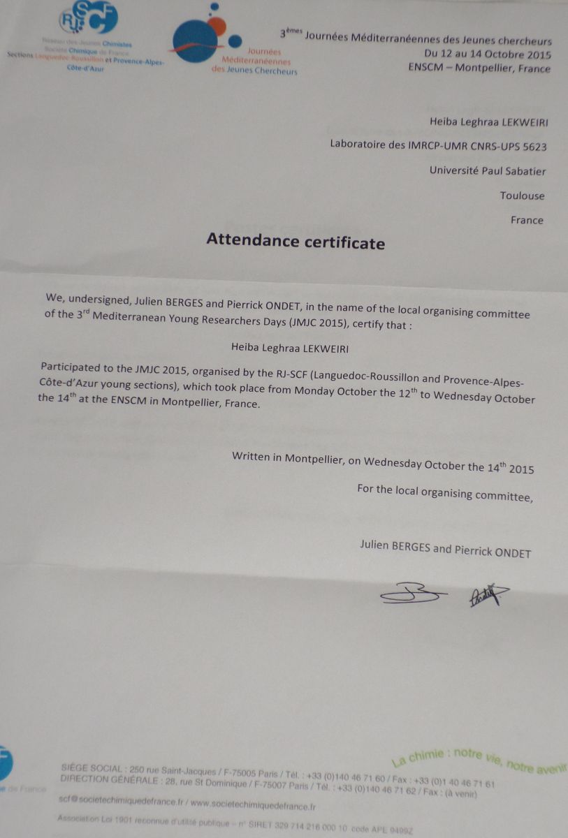 تم اختيار بحث الشاب الموريتاني الكوري ولد هيبه لكرع مهندس في الكيمياء وباحث في المعهد الوطني للبحث في مجال الصحة العمومية INRSP ضمن اكثر من مائتي بحث للمشاركة في المنتدى الثالث المتوسطي للباحثين الشباب الكيميائيين المنظم من طرف شركة الكيمياء الفرنسية بالمدرسة العلي للكيمياء بمدينة موبيلي (Montpellier) .